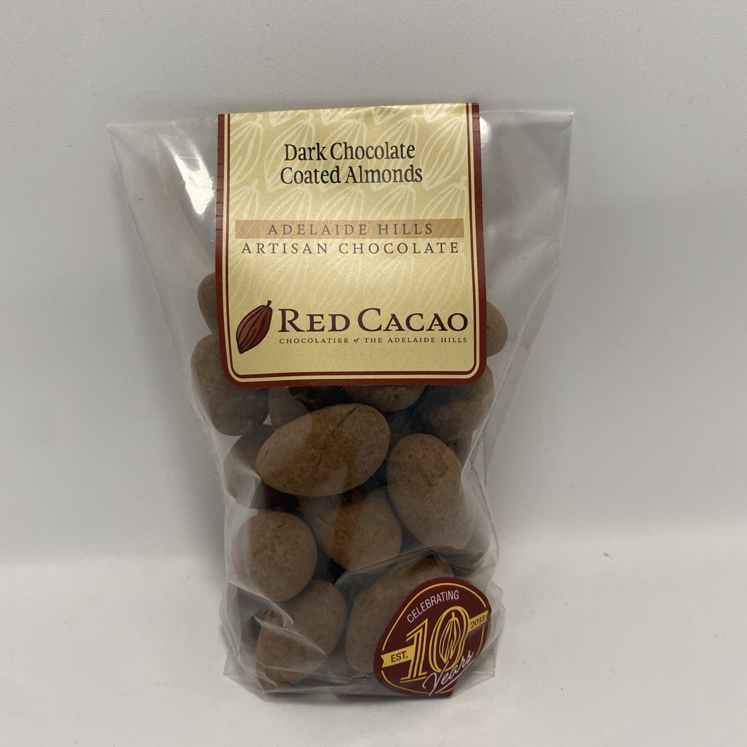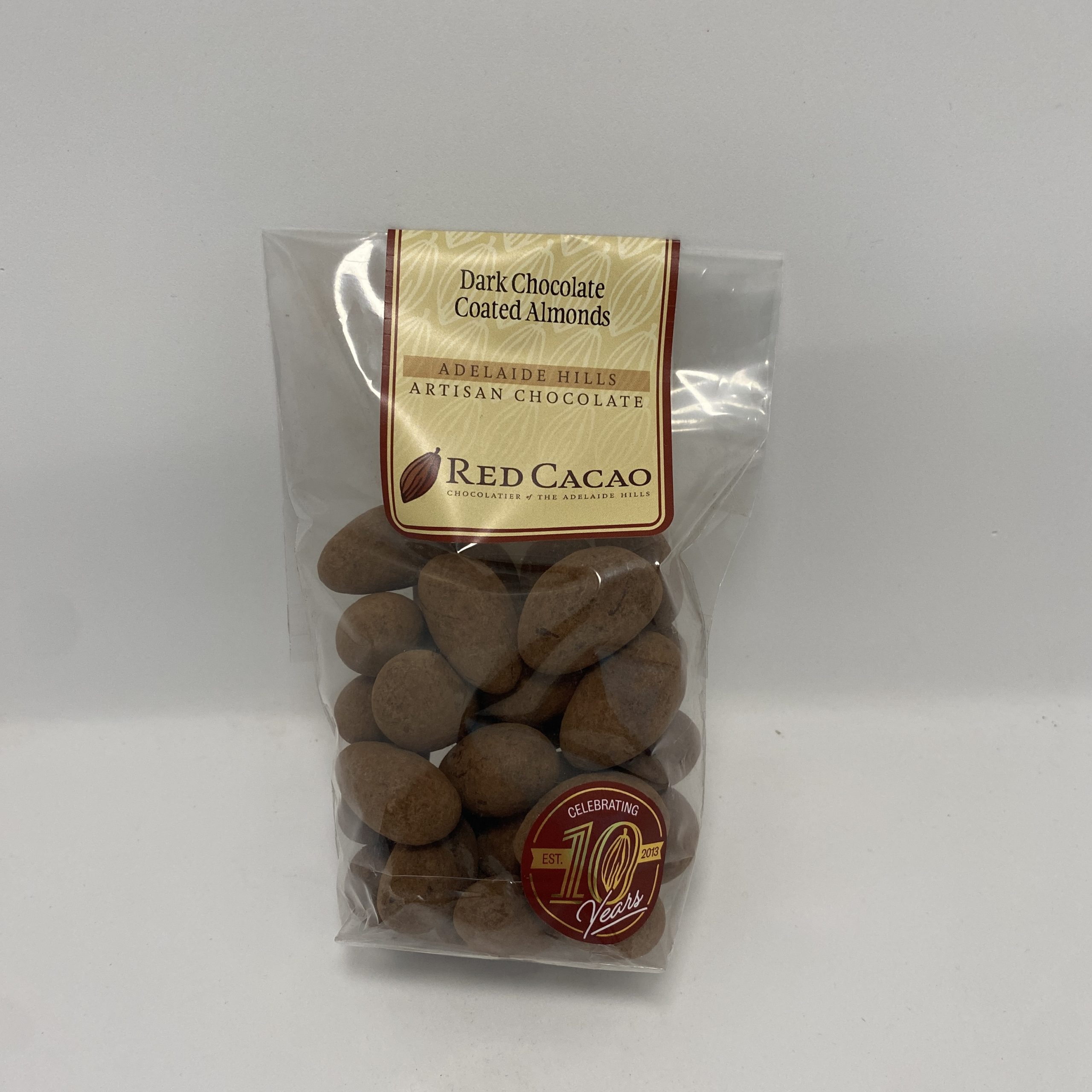 We now use our 65% sustainably sourced dark chocolate to coat these roasted almonds.