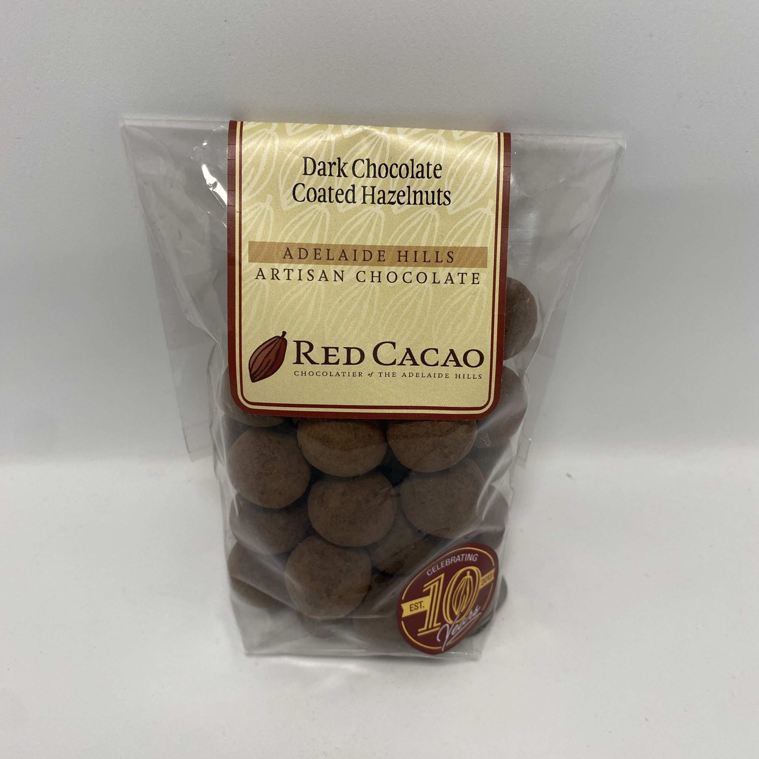 We now use our 65% sustainably sourced dark chocolate to coat these roasted hazelnuts.