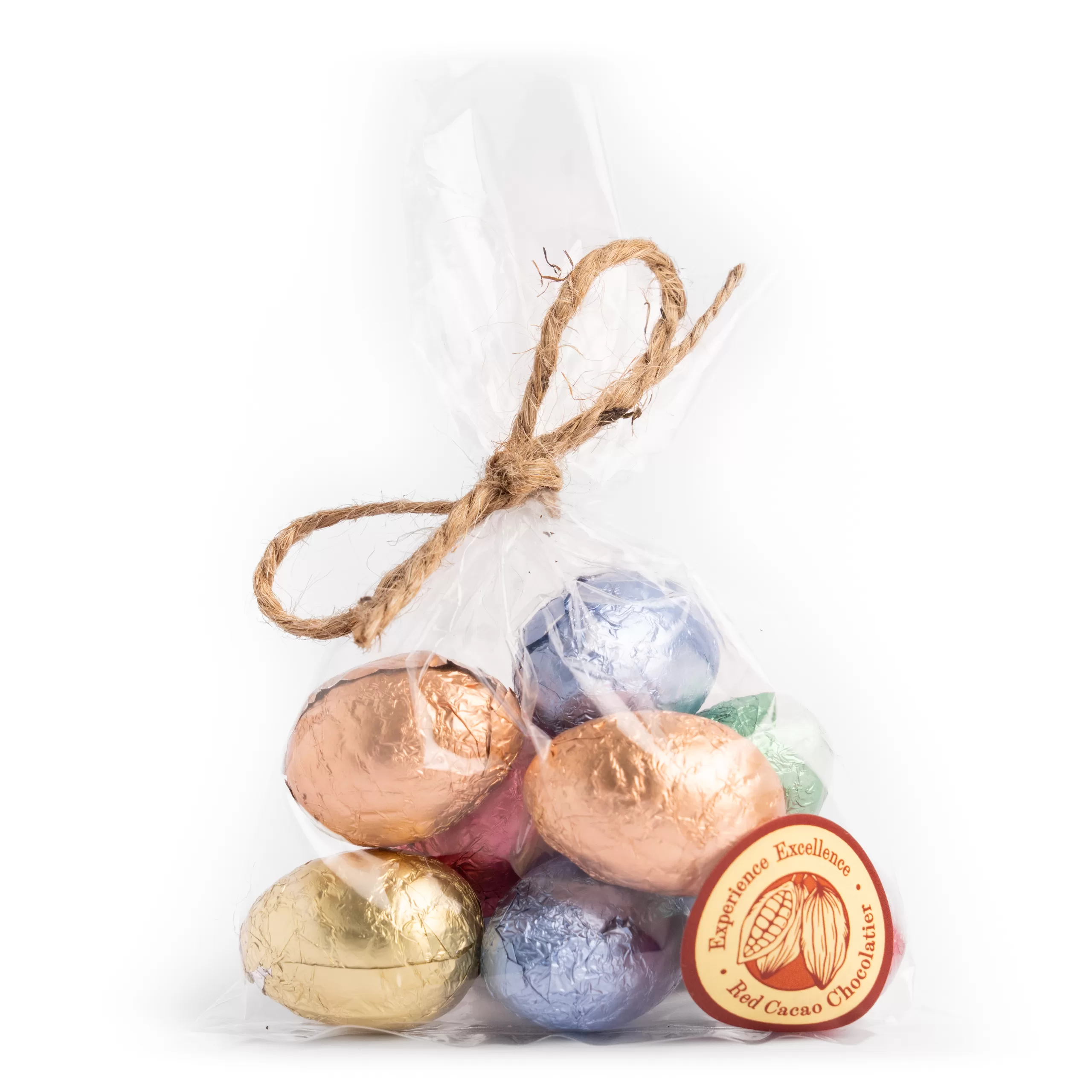 Colourful foil wrapped mini Easter eggs. Mixed, Milk or Dark (DF) chocolate.